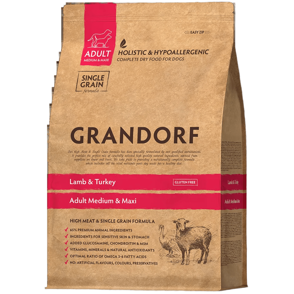 גרנדורף Grandorf מזון יבש לכלבים בוגרים – כבש והודו 10 ק״ג