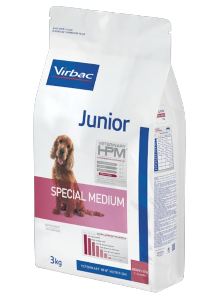 ויטרינרי HPM® מותאם במיוחד לצרכים של כלבים צעירים מגזעים בינוניים בגילאי 7 עד 12 חודשים שמשקלם הבוגר נע בין 10 ל-25 ק"ג